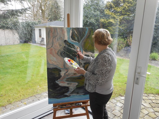 Mijn werk is veelzijdig zoals realistische landschappen, dieren, abstractere vormen en intuitieve werken. Mijn uitdaging is om steeds weer iets heel anders te scheppen. Ik werk vanuit mijn gevoel en weet van te voren niet wat het wordt.
